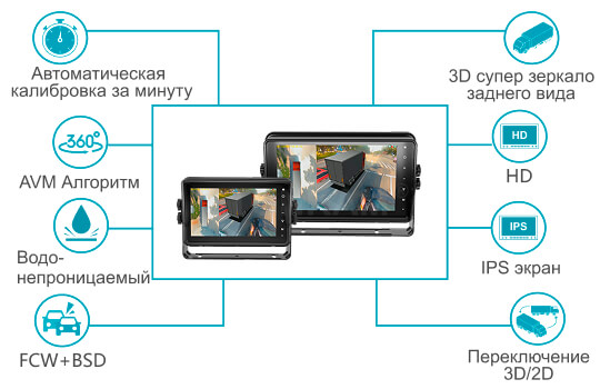 360 Универсальная система панорамного кругового обзора интегрирует алгоритм AVM, который может создавать панорамные изображения вождения без блока управления, чтобы не было слепых зон при движении на 360°. Автоматическая калибровка выполняется за 1 минуту и поддерживает автоматическую коррекцию плоскости, что экономит время и усилия. Поддерживает FCW (предупреждение о лобовом столкновении) и BSD (обнаружение объектов в слепых зонах). Его можно использовать в сочетании с камерами обнаружения пешеходов и радаром, чтобы повысить безопасность вождения грузовиков, общественного транспорта и машин скорой помощи.