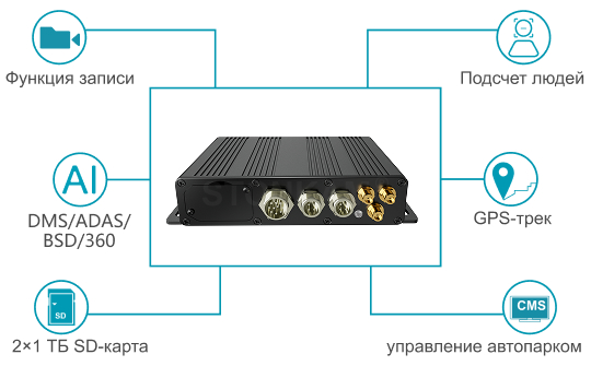 STONKAM 6-канальный AHD видеорегистратор с искусственным интеллектом поддерживает 6-канальный аудио- и видеоввод и объединяет множество передовых алгоритмов ИИ, включая ADAS, DMS, BSD, APC и круговой обзор 360°. Обеспечивает интеллектуальную помощь водителю, мониторинг состояния водителя, обнаружение слепых зон, статистику пассажиропотока и панорамный обзор на 360°. Оснащена мощными функциями записи и возможностями дистанционного мониторинга в реальном времени, что способствует более интеллектуальному и комплексному управлению автопарком!