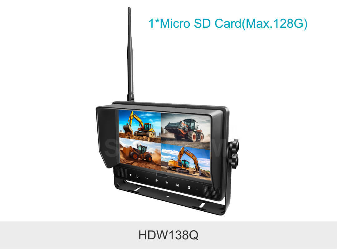 9 дюймов беспроводной мониторинг автомобиля видео TFT ЖК-монитор с беспроводным подключением, легко установить, и в то же время поддерживать видео и сенсорный экран функции; открытая передача расстояние до 180 метров, стабильность сигнала и анти-помех, подходит для грузовиков, погрузчиков, горных грузовиков и других транспортных средств.