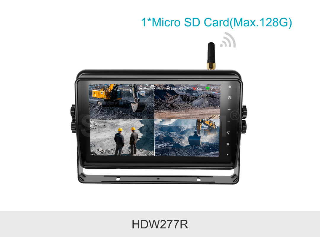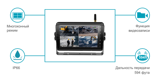 STONKAM 7-дюймовый HD водонепроницаемый беспроводной автомобильный монитор с функцией записи оснащен влагозащитным корпусом стандарта IP66, функциями записи и сенсорного управления. Обеспечивает передачу сигнала на открытой местности на расстояние до 180 метров с высокой стабильностью и помехозащищенностью. Поддерживает многоэкранные режимы отображения и подходит для различных транспортных средств, включая грузовики, погрузчики и шахтные самосвалы.