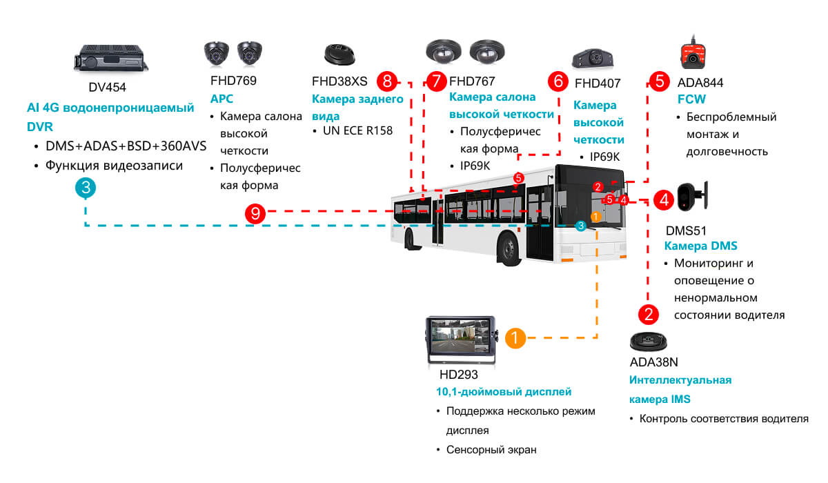 ПодробнееСистема интегрирует APC-статистику пассажиропотока и IMS-мониторинг кабины. MDVR объединяет AI-алгоритмы (BSD/FCW/DMS/360 и др.), поддерживает 4G IoT и передачу данных в реальном времени. Решение обеспечивает точный операционный анализ и многомерную безопасность, повышая эффективность работы автобусов и безопасность движения.
